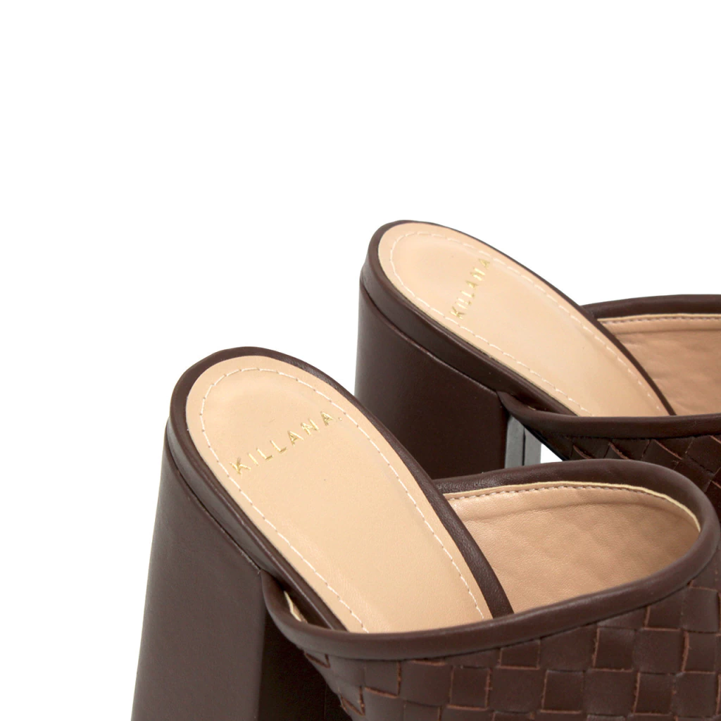 O tamanco Kaela Killana em couro trançado marrom café é a perfeita expressão do artesanato sofisticado aliado a um design escultural e contemporâneo. Cada detalhe do trançado manual evidencia a riqueza do trabalho artesanal, conferindo textura e profundidade únicas ao modelo.