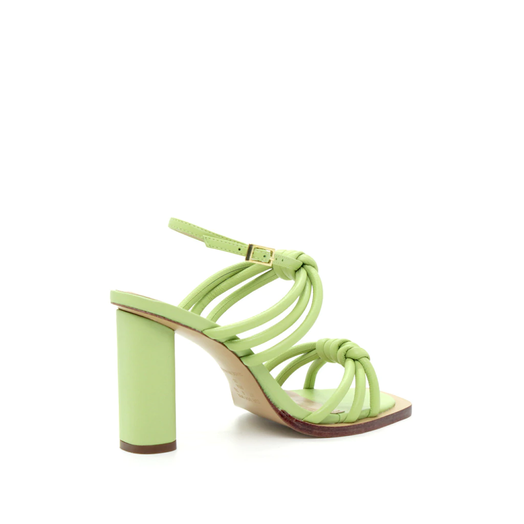 A NYSE em couro verde maçã traz frescor e personalidade ao visual. Suas tiras estruturadas com nós frontais criam uma estética leve e contemporânea, enquanto o salto bloco de 10 cm garante equilíbrio e presença. O tom vibrante de verde adiciona um toque de cor sofisticado e atual, ideal para composições criativas com tons neutros, terrosos ou pastéis. Um modelo que une estilo e impacto visual em perfeita harmonia.