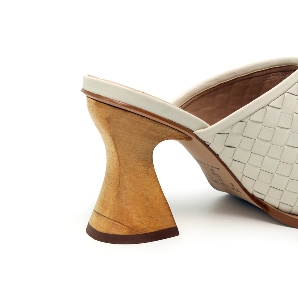 Ona | Off White | Tamanco em couro trançado com salto escultural em madeira
