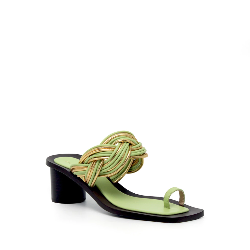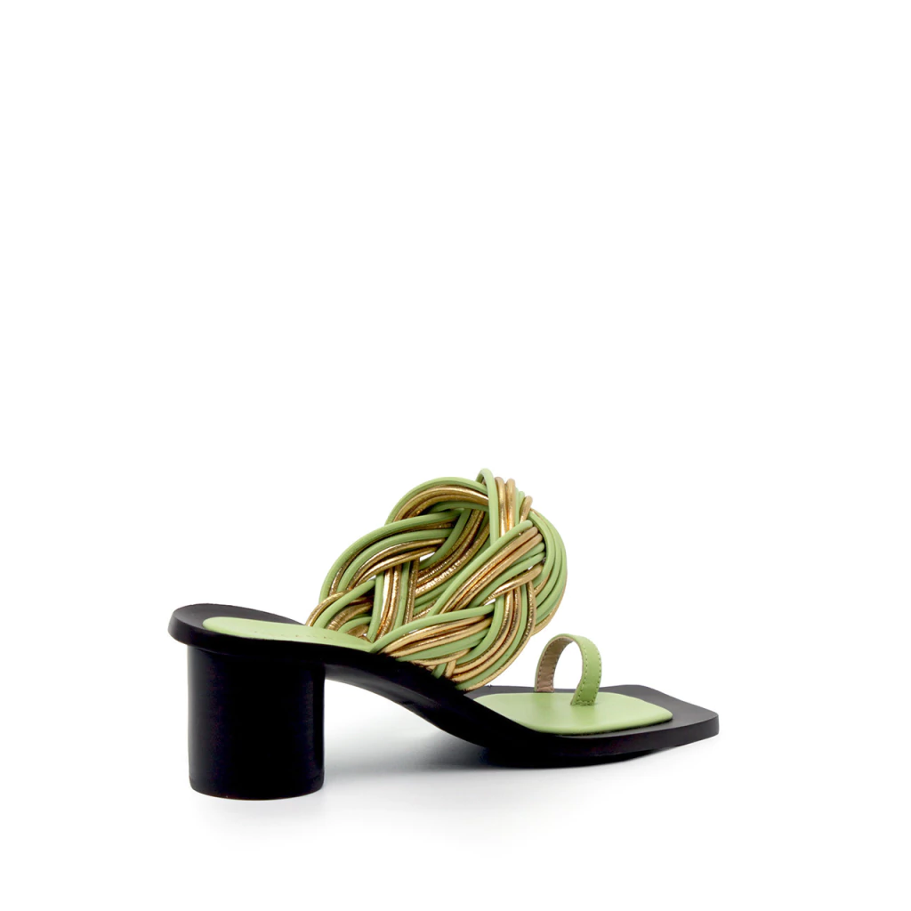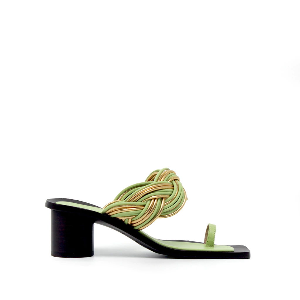 Tizian | Verde maçã | Tamanco thong em couro trançado e salto médio